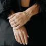 Expertly crafted from high-quality stainless steel, the Aspen Bracelet is coated with a layer 18K Gold for extra shine. Adorned with sparkling cubic zirconia gemstones, this bracelet is perfect for any occasion.